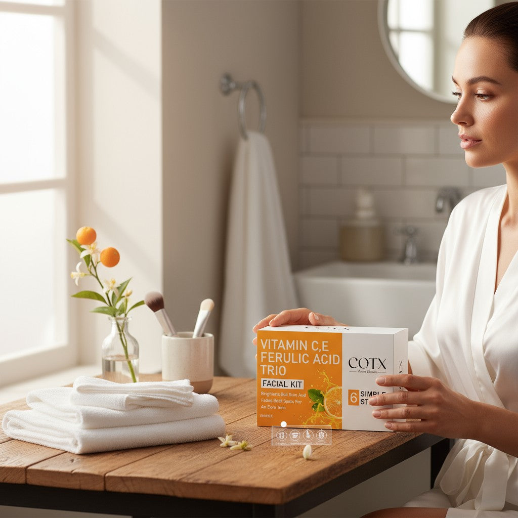 Vitamin C, E & Ferulic Acid Trio Facial Kit – Brightening & Spot-Fading 6-Step Skincare Ritual